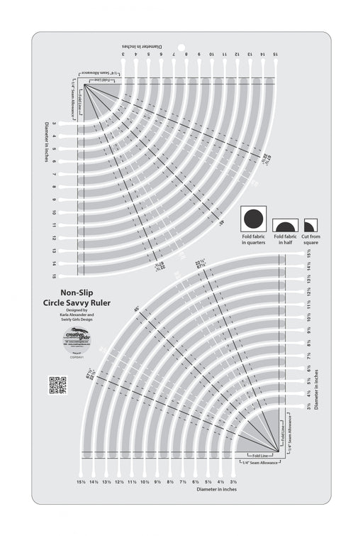 View full detailsThis ruler designed by Karla alexander for Creative Grids® is used to cut circles, semi-circles, and quarter-circles from 3in to 15-1/2in and every...