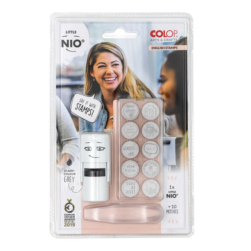 View full detailsColop Little NIO Messages Stamp, Fancy Gray Stamp with 10 Designed Pads 12-piece kit (Handmade) • COLOP’s Little NIO Messages Stamp with washa...