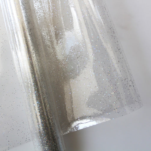 See-through glitter vinyl with subtle sparkles throughout. CLEAR! You'll get one piece measuring 18in x 48in. 12 gauge vinyl is 0.35mm thick. ...