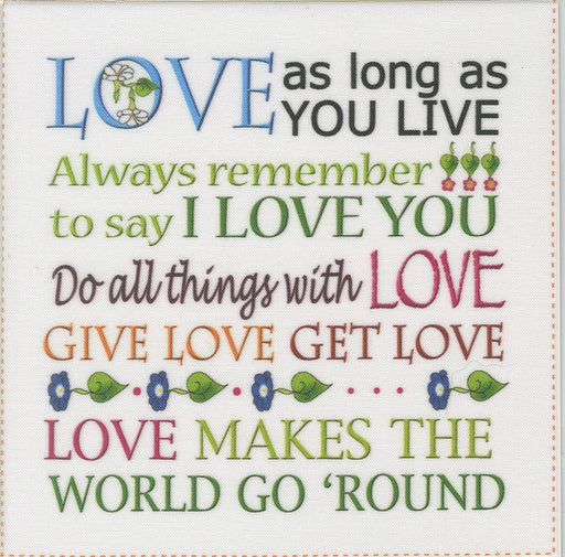 View full details6in x 6in Fabric Art Panel for Quilting Projects. Design features the phrase "Love as long as you live. Always remember to say I love you. Do ...