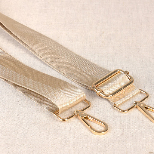 View full detailsAdjustable shoulder strap in Beige. Length adjusts from 80 cm - 140 cm. Strap is 3.6 cm wide. Gold hardware includes swivel clips for quick an...