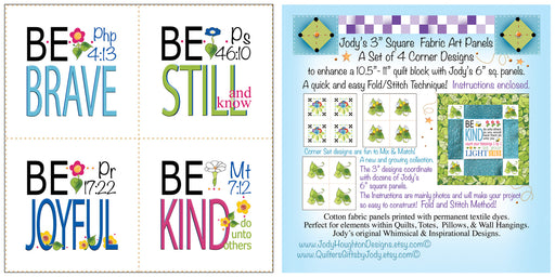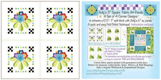 The 4 three-inch panels coordinate with dozens of Jody 6" square fabric panels. A new Fold/Stitch quilt block is available as an example of ho...