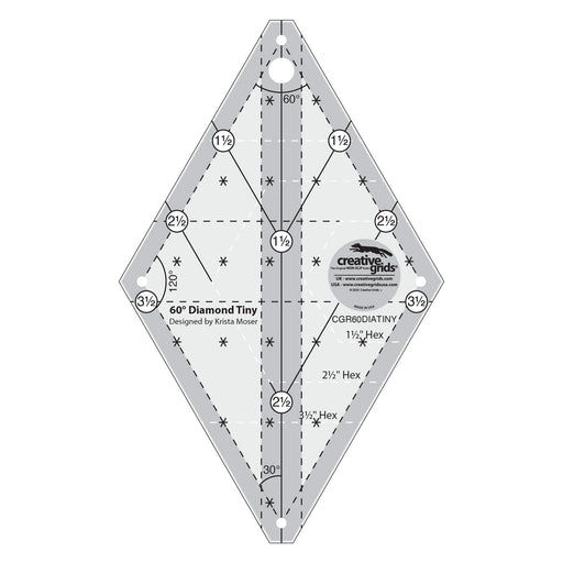 View full detailsThe 60 Degree Tiny Diamond Ruler designed by Krista Moser for Creative Grids® allows you to cut diamonds, triangles, hexagons, parallelograms, trap...
