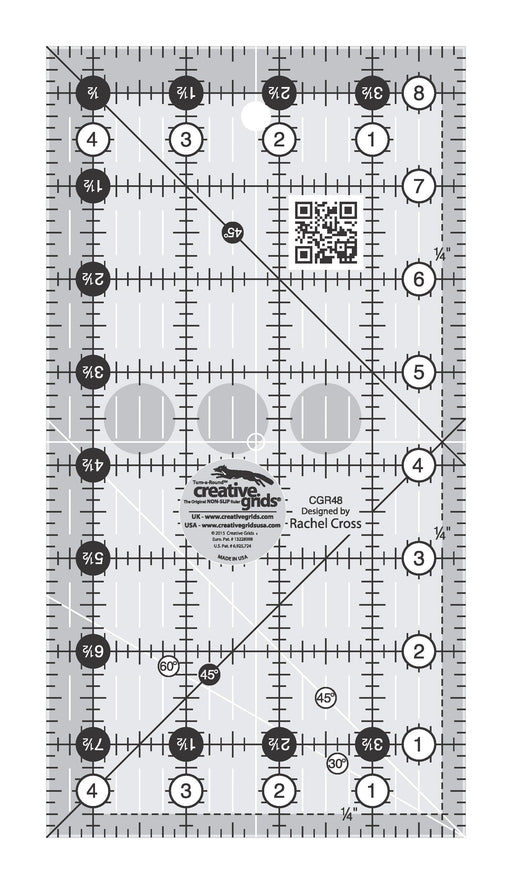 View full detailsThis easy to handle 4-1/2in x 12-1/2in rectangle ruler from Creative Grids® comes packed with the features you know and love from our rulers. The 1...