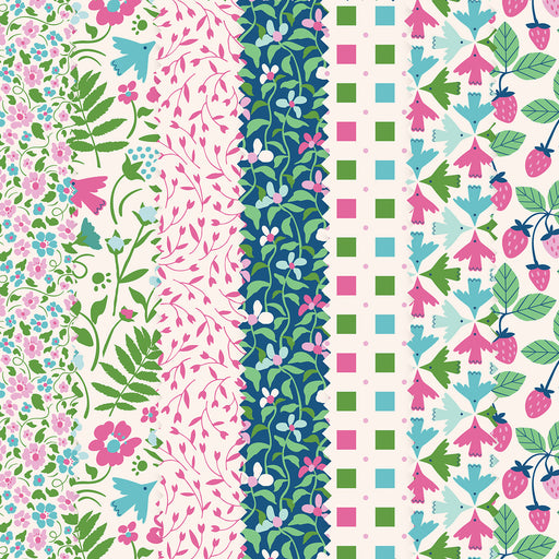 View full detailsThis vibrant fabric collection features a delightful array of botanical designs, each square showcasing a different pattern. The first design ...