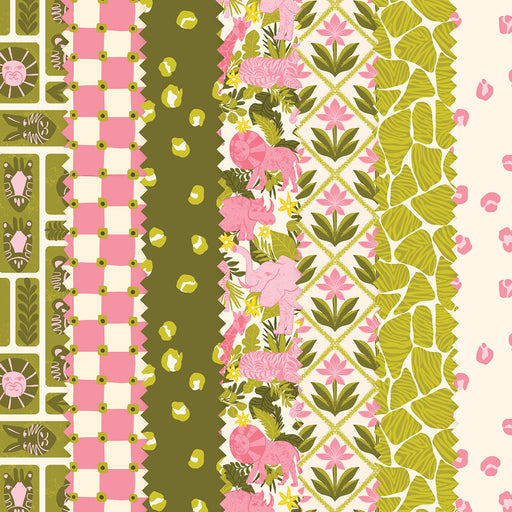 View full detailsThis vibrant fabric bundle features a delightful array of patterns in shades of pink, green, and white. The design includes a mix of playful e...