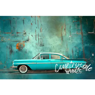 View full detailsThis fabric panel features a stunning digital print of a classic turquoise Chevrolet car set against a textured, teal urban backdrop, evoking a vin...