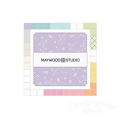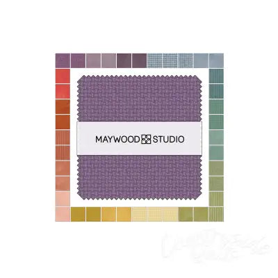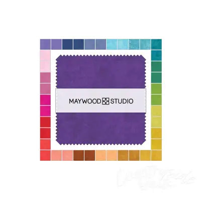 View full detailsThis vibrant fabric collection features 5-inch squares from Maywood Studio, showcasing a rich purple square at the center, surrounded by a spectrum...