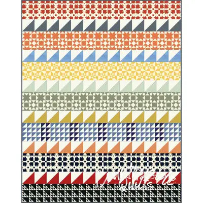 View full detailsThis vibrant quilt kit features a mesmerizing design centered around a dynamic star motif, surrounded by concentric circles of colorful triangles. ...