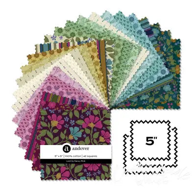 View full detailsDiscover the enchanting Lush collection of 5-inch cotton squares, where vibrant floral prints and subtle stripes in lush greens, serene blues, soft...