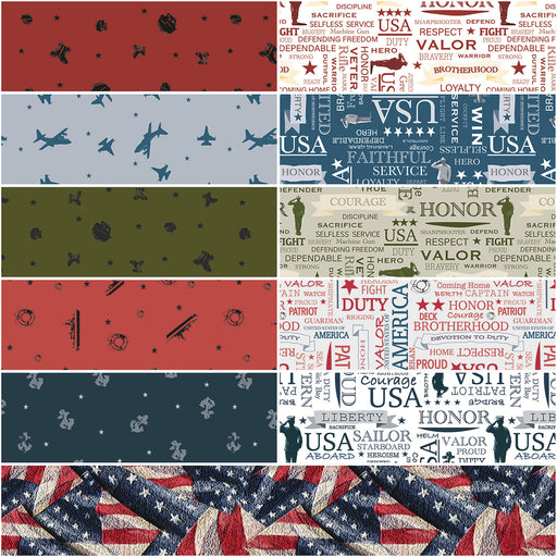 View full detailsThis vibrant fabric collection features a series of designs celebrating military branches with themes of service, valor, and patriotism. Each ...