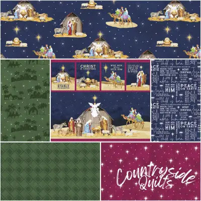 View full detailsThis vibrant fabric bundle features a delightful nativity theme, perfect for holiday crafting. The design showcases a starry night sky with camels,...