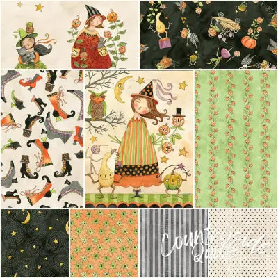 View full detailsThis vibrant fabric collection features a whimsical Halloween theme with a variety of designs. The main design showcases a charming witch in a gree...