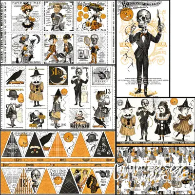 This vibrant and whimsical fabric collection features a delightful array of vintage-inspired Halloween designs, perfect for costume makers and Hall...