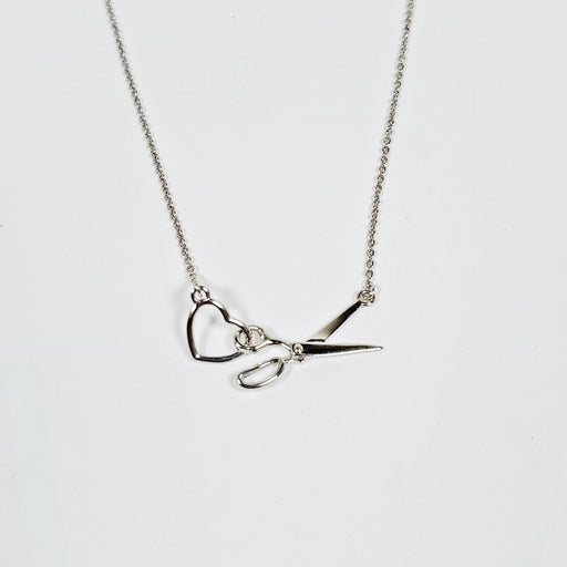 View full detailsThis adorable charm necklace features the scissors interlocking with the open heart charm. The Scissors measure approximately 1.25in width. Ne...