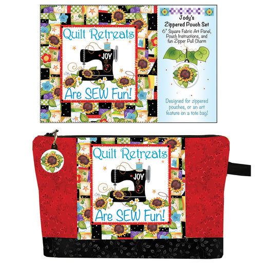 The Set includes the 6" fabric panel, Instructions for making a lined Zippered Pouch, and the coordinating Zipper Charm. Beginner level. Jody'...