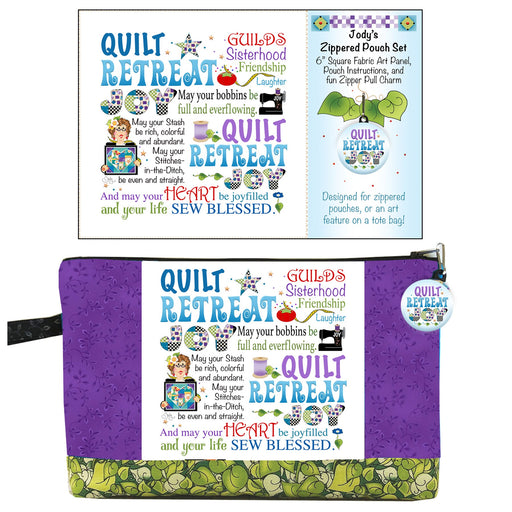 View full detailsThe Set includes the 6" fabric panel, Instructions for making a lined Zippered Pouch, and the coordinating Zipper Charm. Beginner level. Jody'...