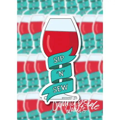 View full detailsThe Sip 'N' Sew Sticker is a doodle of a glass of red wine with a banner featuring the phrase "Sip 'N' Sew" wrapped around the stem. All our die cu...