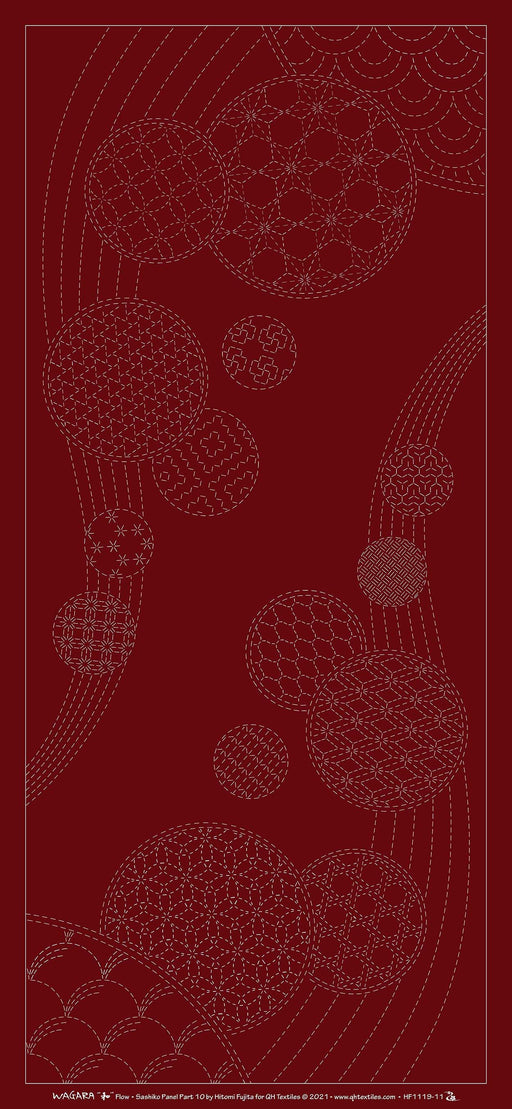 View full detailsFlow - Inspired by windchimes swaying in gentle breeze. Sashiko panel printed with water soluble ink. Can be used as table runner, wall hangin...