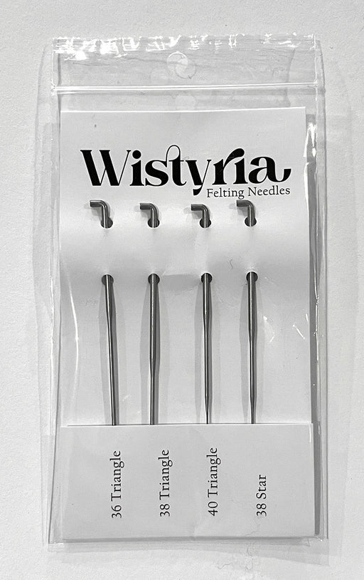 View full detailsWistyria Editions Felting Needles are the hands tools necessary to do needle felting. Each needle has a long shank with a narrow shaft that ha...
