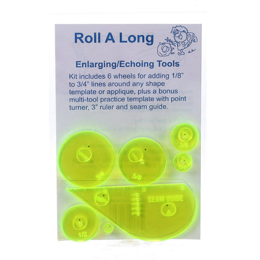 View full detailsKit included 6 wheels for adding 1/8in to 3/4in around applique or quilting templates. Kit also includes a multi-tool practice template with p...
