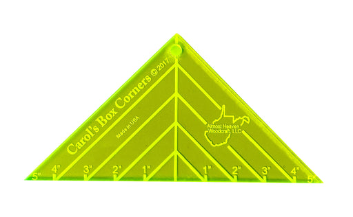 View full detailsCarol's E Z Box Corners marking template makes marking box corners from 1 inch to 4 inches easy. Place center line on corner seam and simply s...