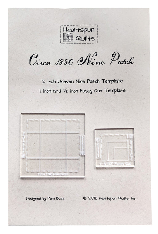 View full detailsTemplate set companion to The Circa 1880 Nine Patch quilt pattern. 2 inch uneven nine patch square up template and 1 inch & 1/2 inch fussy...