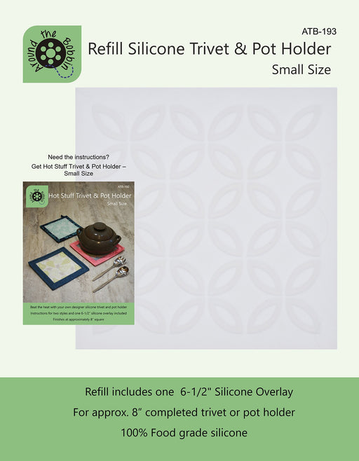 View full detailsHot Stuff Trivet and Pot Holder – Small Size Refill. Includes one 6-1/2in silicone overlay. Use with the ATB-192 Hot Stuff Trivet and Pot Hold...