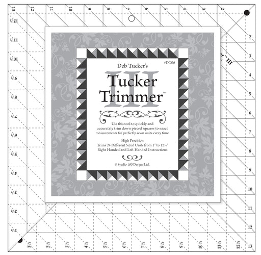 View full detailsThe Tucker Trimmer tool was designed to help quilter’s quickly and easily trim down units that are made with triangles: half square triangle s...