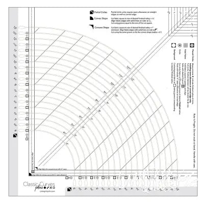 View full detailsFeatures: -19 slots for cutting curved shapes for quilting -slots range in size from radius of 4" - 13" -lines on the ruler indicate placement o...