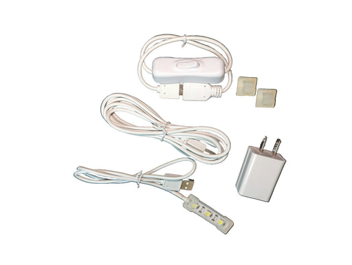 View full details15 LED USB Complete Kit includes 15 LED light with USB plug, on/off switch, 6.5 foot USB cable, USB adapter for plugging into wall and 3 wire ...