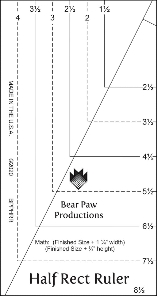 View full detailsThis Half Rect Ruler helps you trim precise half rectangle triangle units quickly and easily. The finished unit is twice as tall as it is wide...