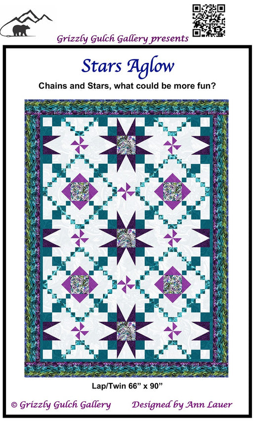 View full detailsChains and Stars, what could be more fun? This dramatic lap quilt (66" x 90") is made from easy components. Four patch blocks, flying geese ...