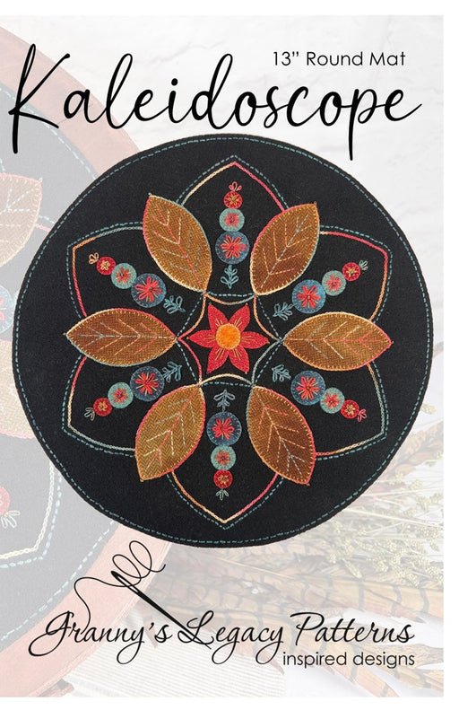 View full detailsThis mesmerizing 13" round mat reminds us of looking through a kaleidoscope! Featuring artisan dyed wool appliques, Valdani perle cotton embro...