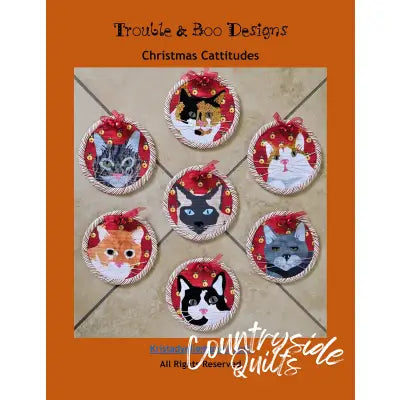 View full detailsChristmas Cattitudes – 7 - four inch round ornaments Perfect for the cat lover. Super easy pattern of quilted cat ornaments. No edge stitching, no...