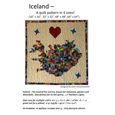 View full detailsIceland pattern in 4 sizes - small wall/pillow 16" x 16", 32" x 32", 48" x 48" up to 64" x 64" All strip pieced by column. No templates, no ap...