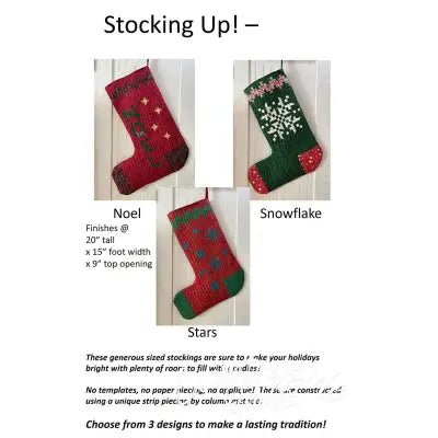View full detailsStocking Up! - Chose from 3 designs to create an heirloom Christmas Stocking to be cherished for years. Strip pieced in columns - no applique or ...