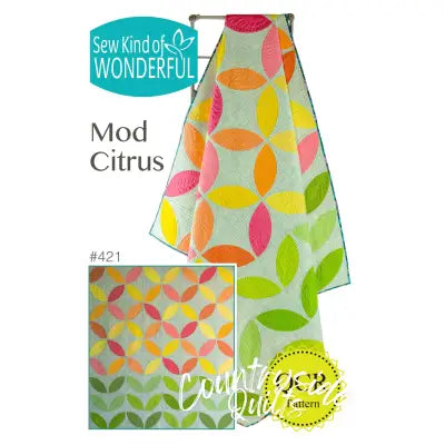 Mod Citrus is a bright and fun slice of summer quilt. This pattern uses the QCR Quick Curve Ruler and is 60in x 67in.