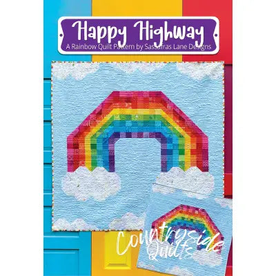 Happy Highway is an adorable quilt pattern featuring a patchwork rainbow floating amongst clouds. Simple piecing provides a universal pattern perfe...