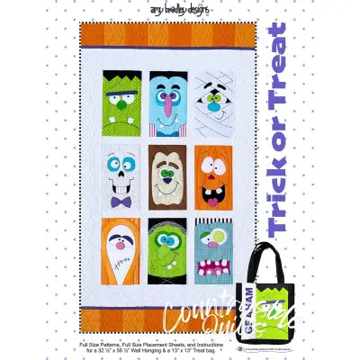 View full detailsTrick or Treat pattern includes full size patterns, full size placement sheets, and instructions to make a 32 1/2" x 56 1/2" wallhanging and a 13" ...