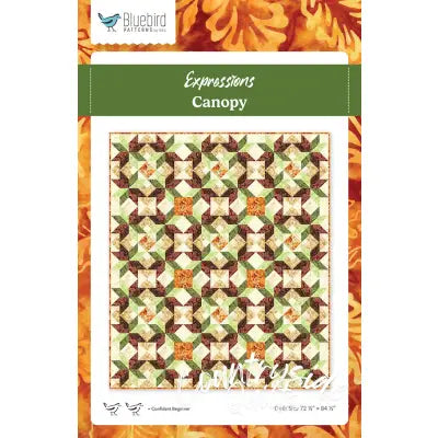 The Canopy Quilt by Bluebird Patterns is a one block quilt that creates interesting secondary patterns. Finished size is 72 1/2" x 84 1/2".