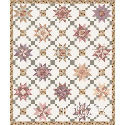 The Prairie Garden Quilt by Modern Prairie features different pieced star blocks with a chain block setting. Finished size is 96 1/2" x 114 1/2".