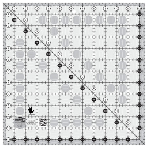 Creative Grids Left Handed Quilt Ruler 12-1/2in Square This left-handed version of the 12-1/2in square ruler from Creative Grids® is a mirror image...