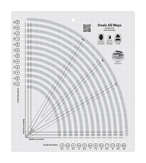 Creative Grids Ovals All Ways Quilt Ruler  This ruler is designed to cut quarter, half, and full oval shapes in a variety of sizes ranging fro...