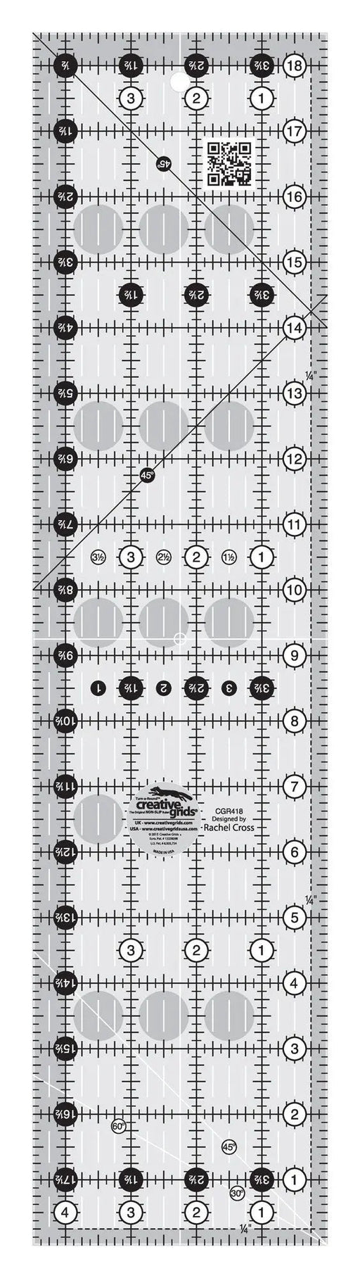 Creative Grids Quilt Ruler 4-1/2in x 18-1/2in This easy to handle 4-1/2in wide ruler from Creative Grids® comes packed with the features you know a...