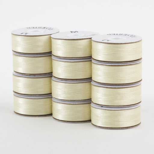 View full detailsTube of 12 cardboard sided bobbins. Designed for applique, bobbin thread, embroidery, and quilting. M Style Bobbins Color: White Made of: Poly...