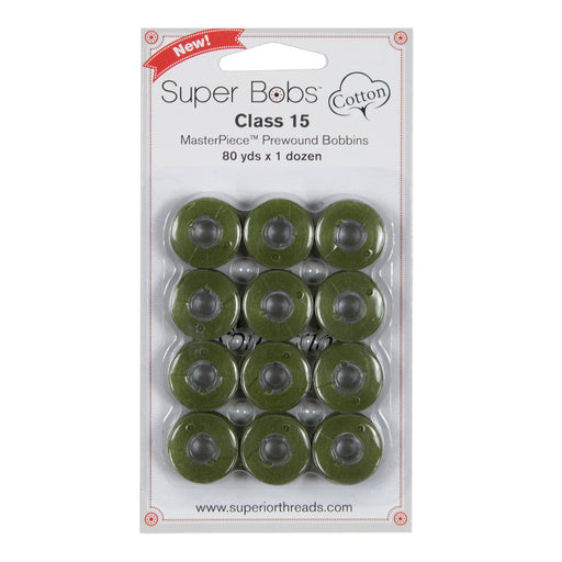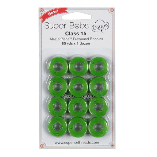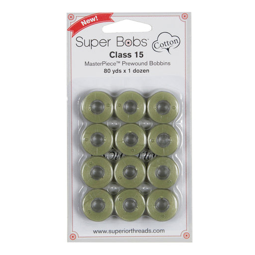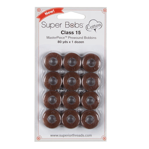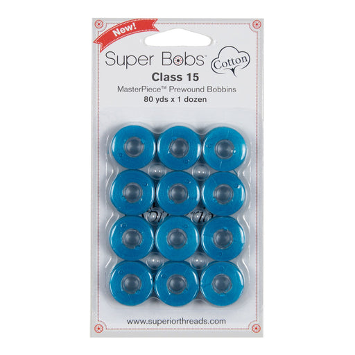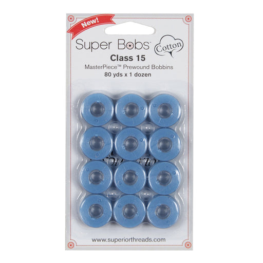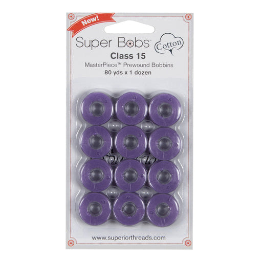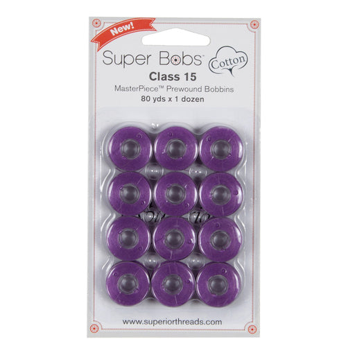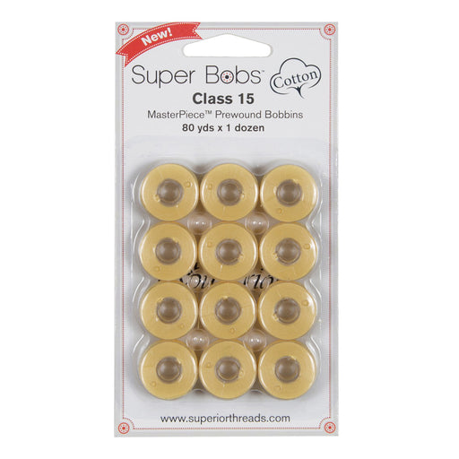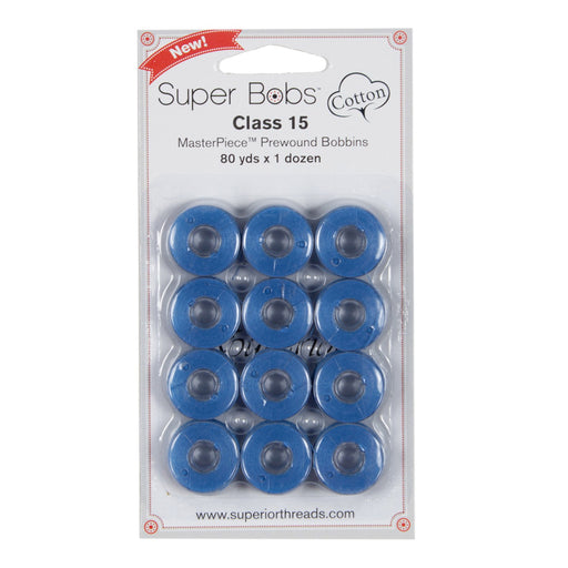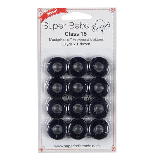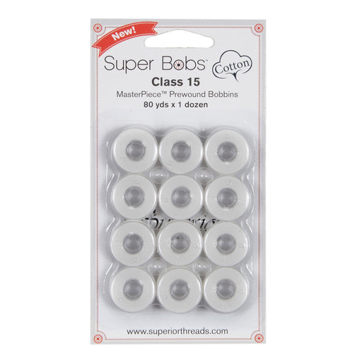 View full detailsClass 15 Super Bobs Cotton are prewound bobbins that are wound with our strong and low-lint Master Piece 50 wt. 2-ply Egyptian extra-long stap...