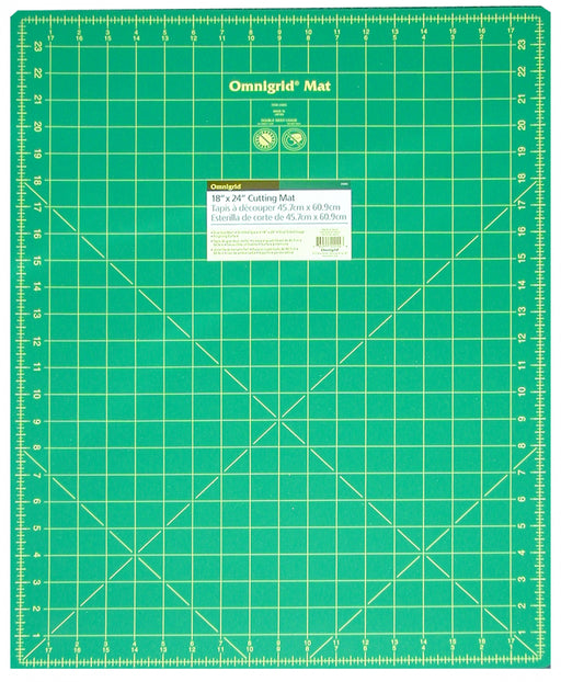 View full detailsThe 18in x 24in Omnigrid double-sided cutting mat is ideal for use in quilting for cutting fat quarters and smaller pieces of fabric. It featu...