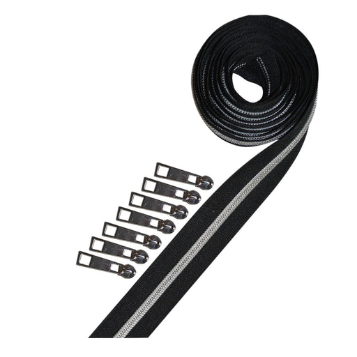 View full detailsThis 2 -1/2 yard package of #5 black zipper tape with 7 slides. The gold metallic teeth have the beauty of metal, with the ease of a coil that...
