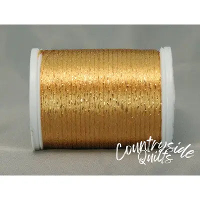 Combination rayon and metallic flat braid for couching, bobbinwork, and embellishing.